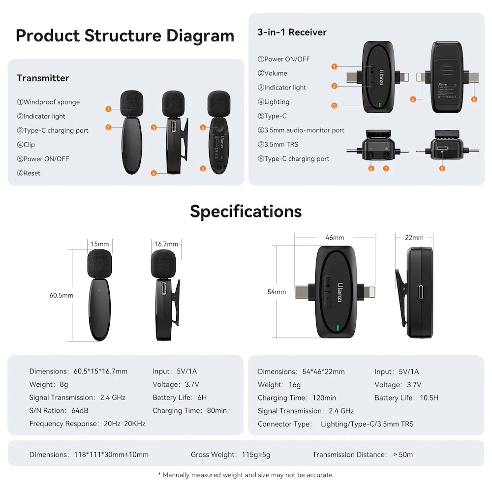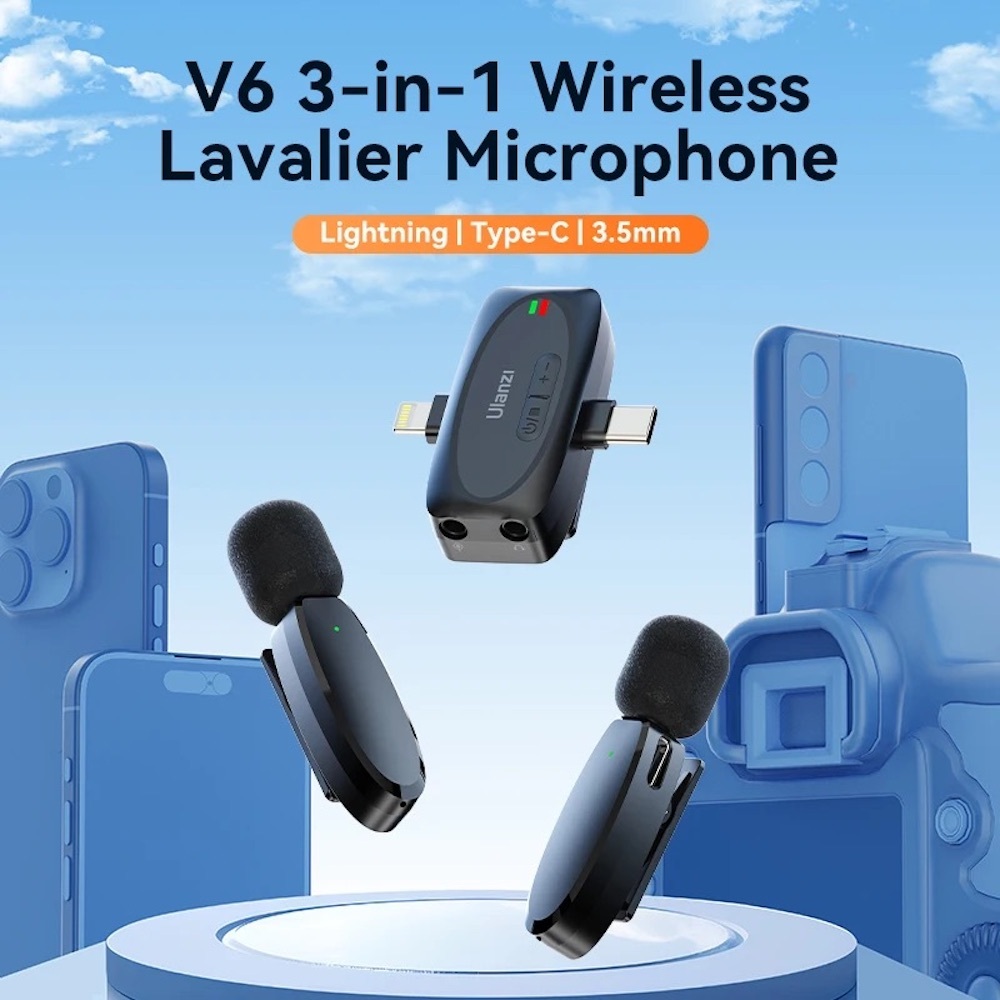 Ulanzi V6 3 In 1 Lavalier Mic Wireless Microphone for Smartphone/Camera
