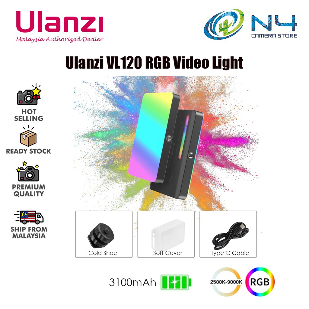 Ulanzi VL120 RGB LED Video Light RGB Mini LED 2500K-9000K Photography Fill-in Light Dimmable CRI95+ 20 Lighting Effects