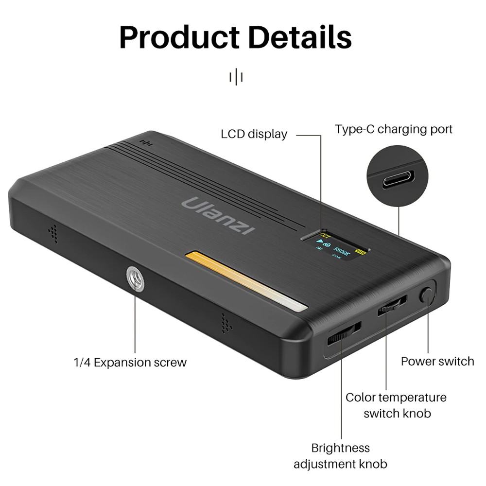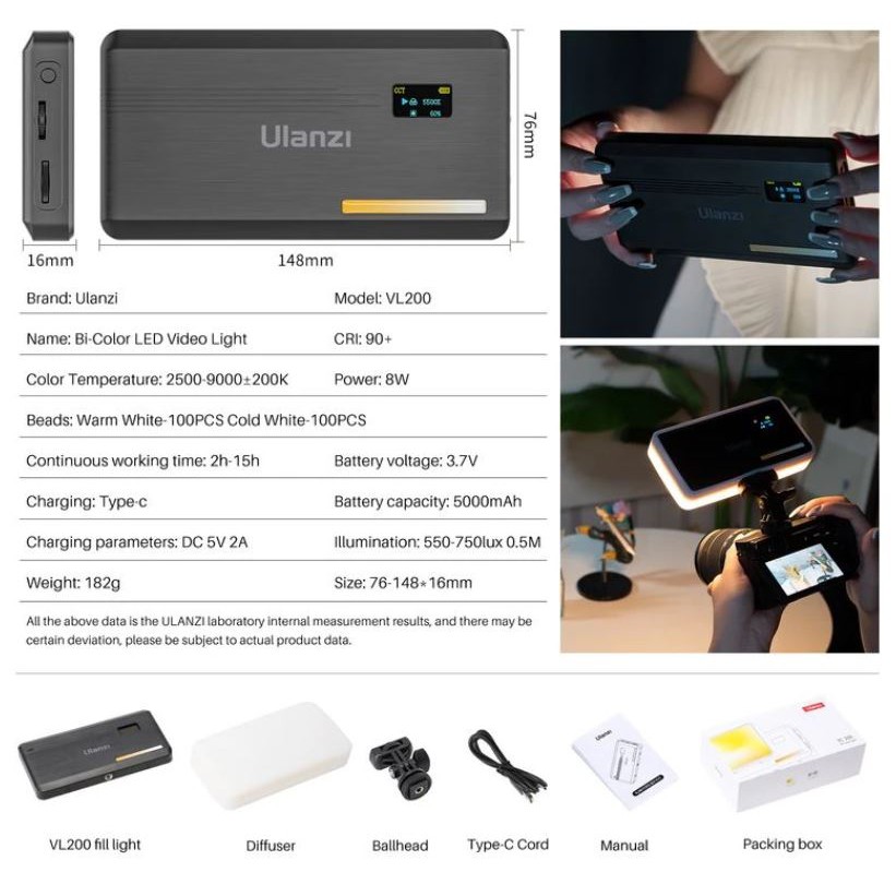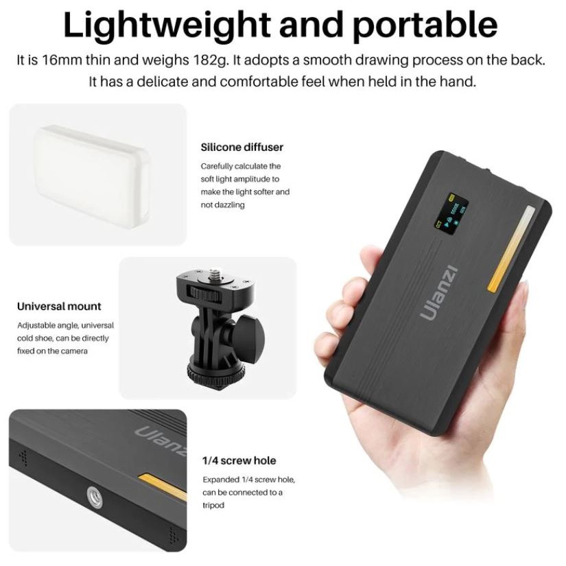 Ulanzi VL200 Rechargeable Camera Video Light with Soft Diffuser 5000mAh 2500K-9000K Smartphone Vlog Light Fill 2481