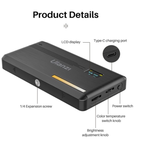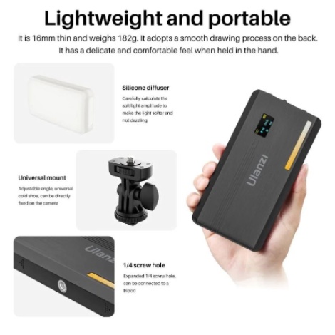 Ulanzi VL200 Rechargeable Camera Video Light with Soft Diffuser 5000mAh 2500K-9000K Smartphone Vlog Light Fill Light