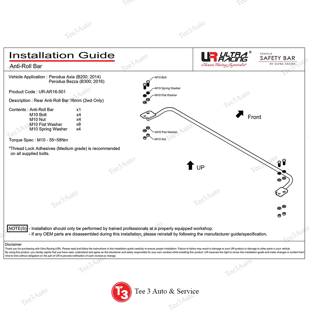 Ultra Racing Perodua Axia Rear Anti-Roll Bar / Rear Sway Bar / Rear Stabilizer Bar