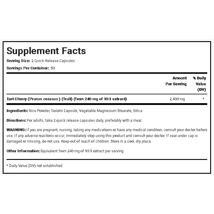 Ultra Tart Cherry 2400 mg, 100 Capsules (Reduce Joint Inflammation, Fight Gout, Reduce Uric Acid, Antioxidant)