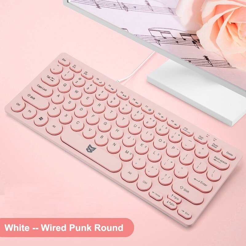 Ultra Thin Retro Punk Wired Keyboard 78Keys USB Pink Round Mute Button Computer Mini keyboard Numeric Keypad Ergonomic Slim Universal USB Multimedia Keyboard For Laptop PC Notebook