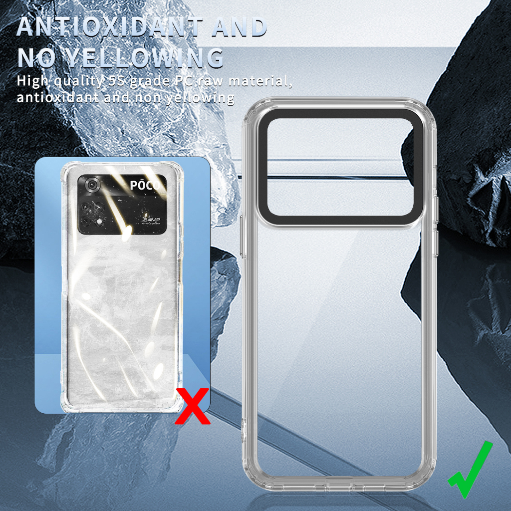 Ultra-thin Clear Silicone PC Protection Back Cover Xiaomi POCO M4 Pro/POCO M4 M5 F5 M6 Pro 5G/POCO X5 Pro Frame Shockproof Case