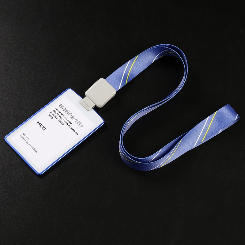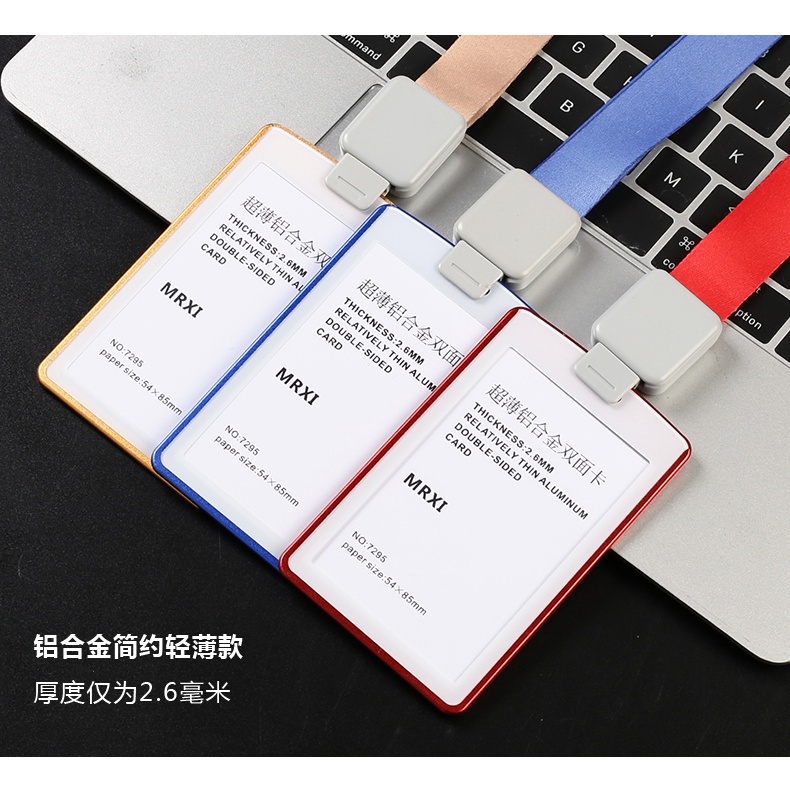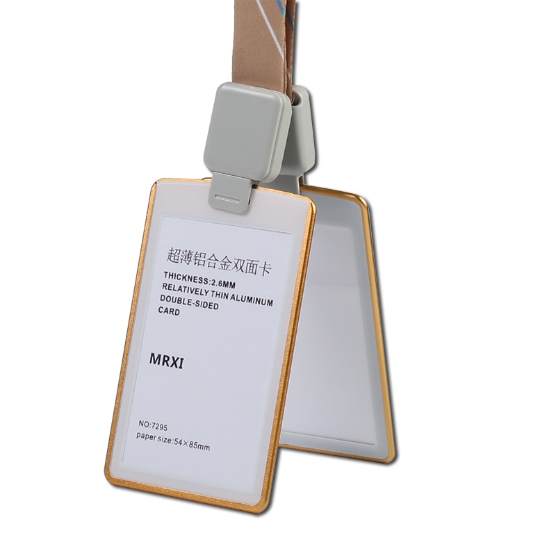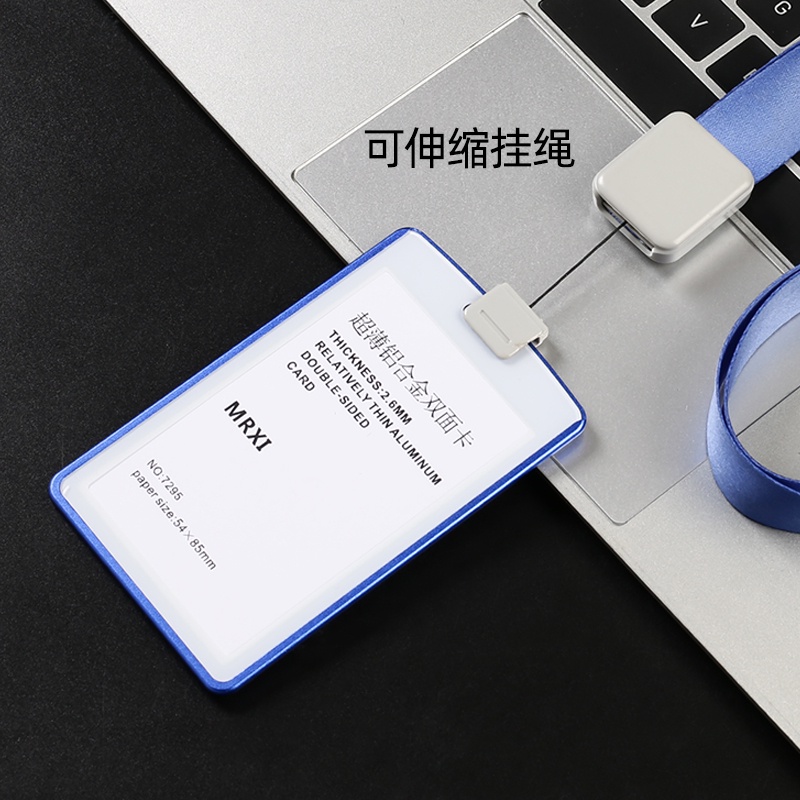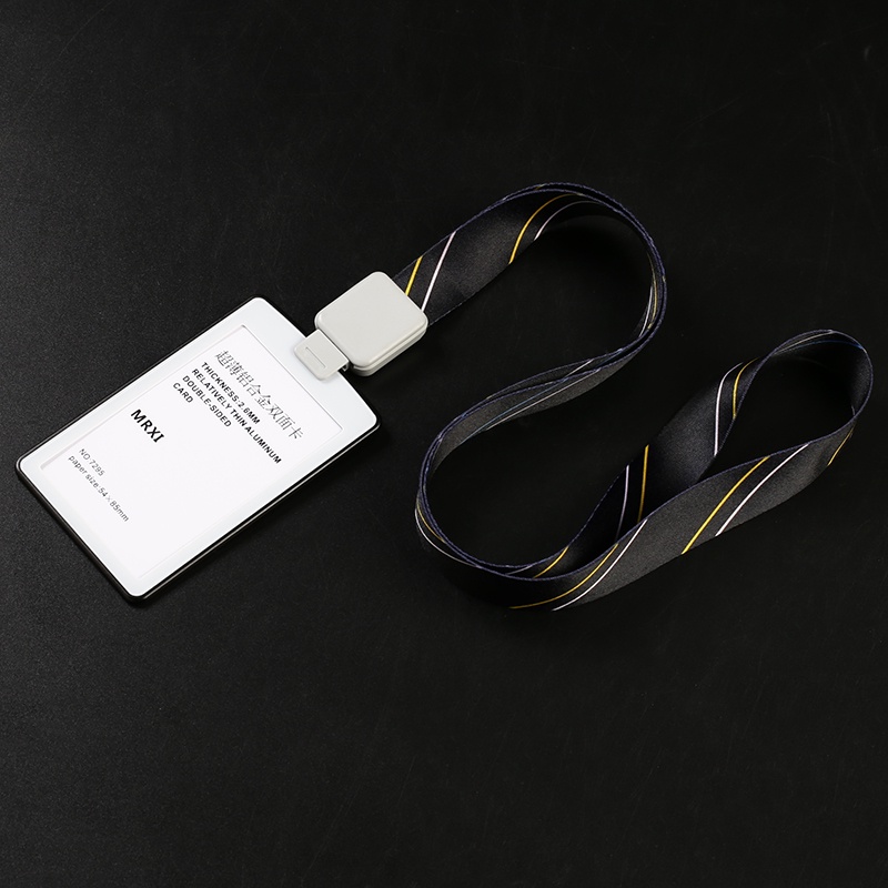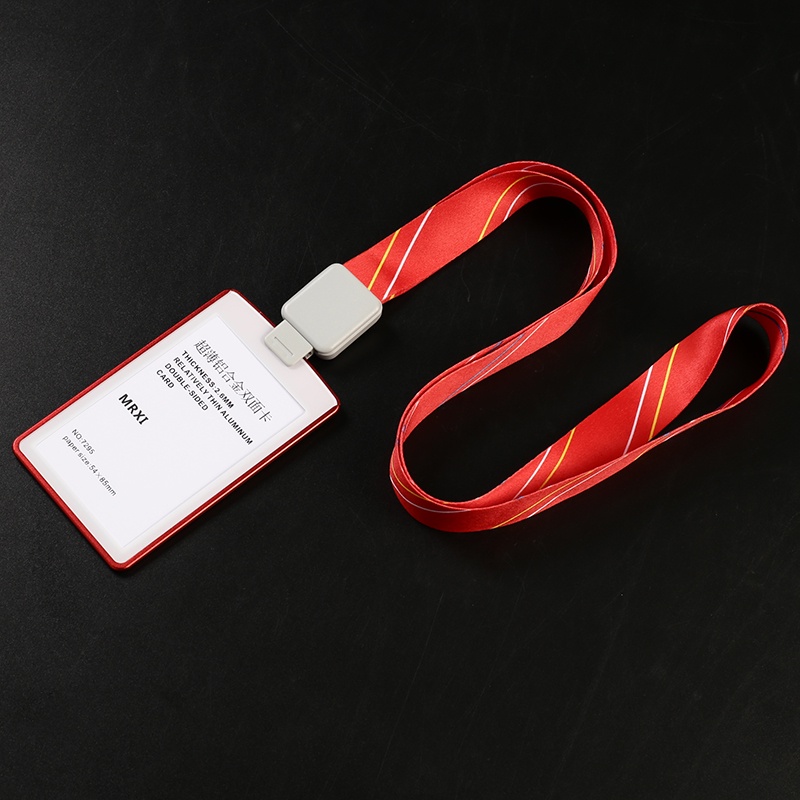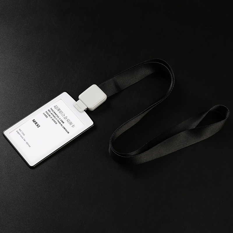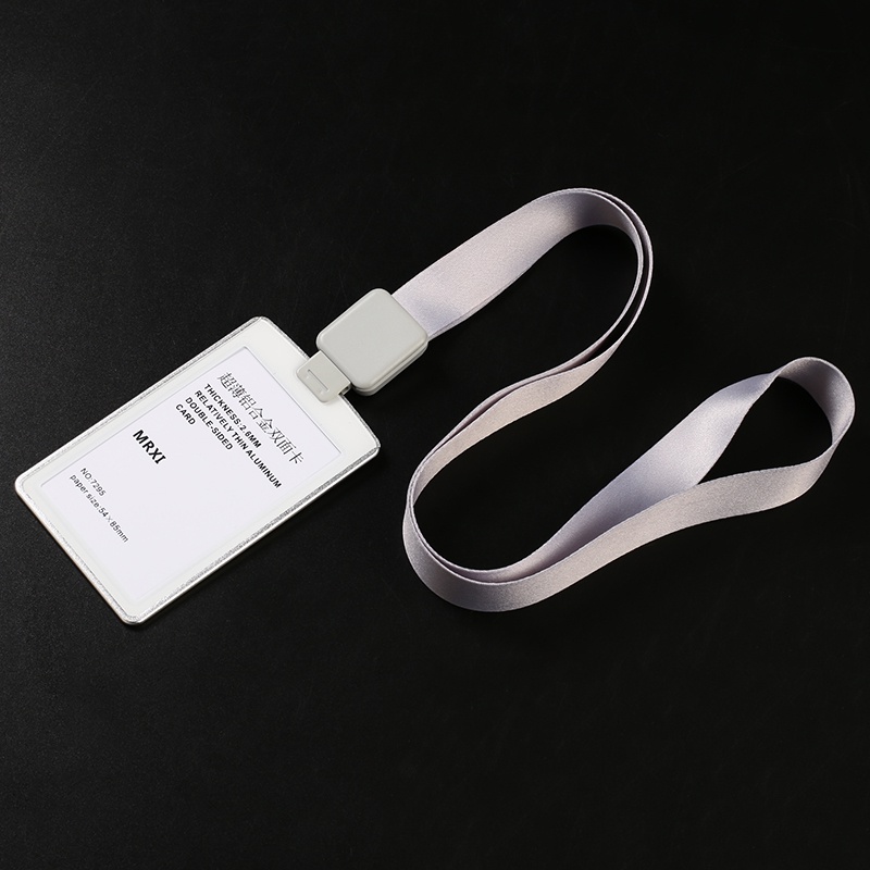 Ultra-thin Textured Metal Double-Sided Transparent Identification Card Holder EasyCard Holder (with Retractable Lanyard) Student ID Holder/Card Holder/Employee ID/Work Permit/ID Holder