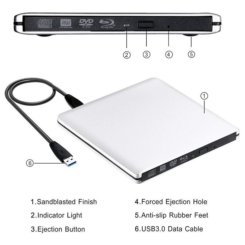 Ultra-thin USB 3.0 External Blu-ray DVD/BD/CD Drive Ultra-thin 3D Player/Writer/Burner Portable DVD Player