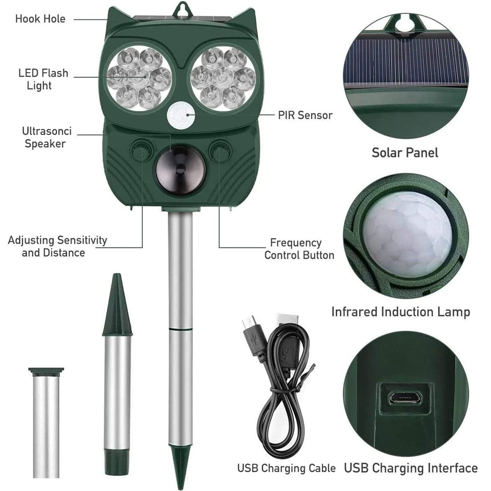 Ultrasonic Animal Control Solar Powered PIR Sensor Pest Bird Repeller Outdoor Yard Chaser Garden Deterrent Mouse Cat Dog