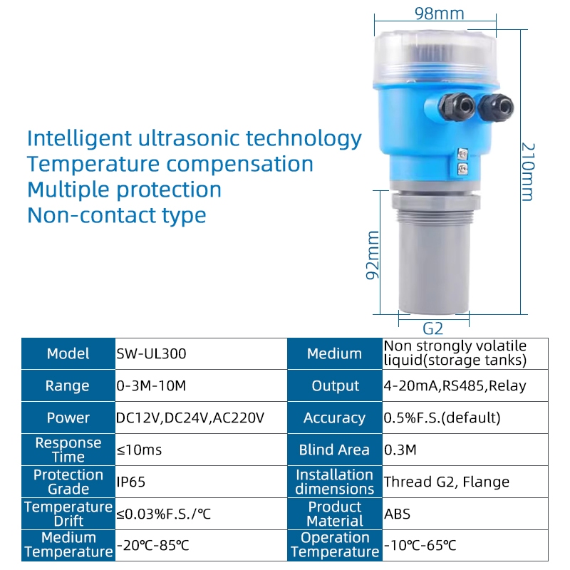 Ultrasonic Level Gauge Meter River Lake Water Tank 0-10M 4-20mA RS485 Water Level Sensor Transmitter