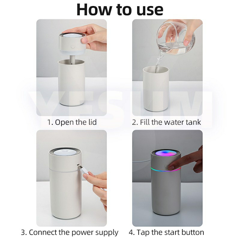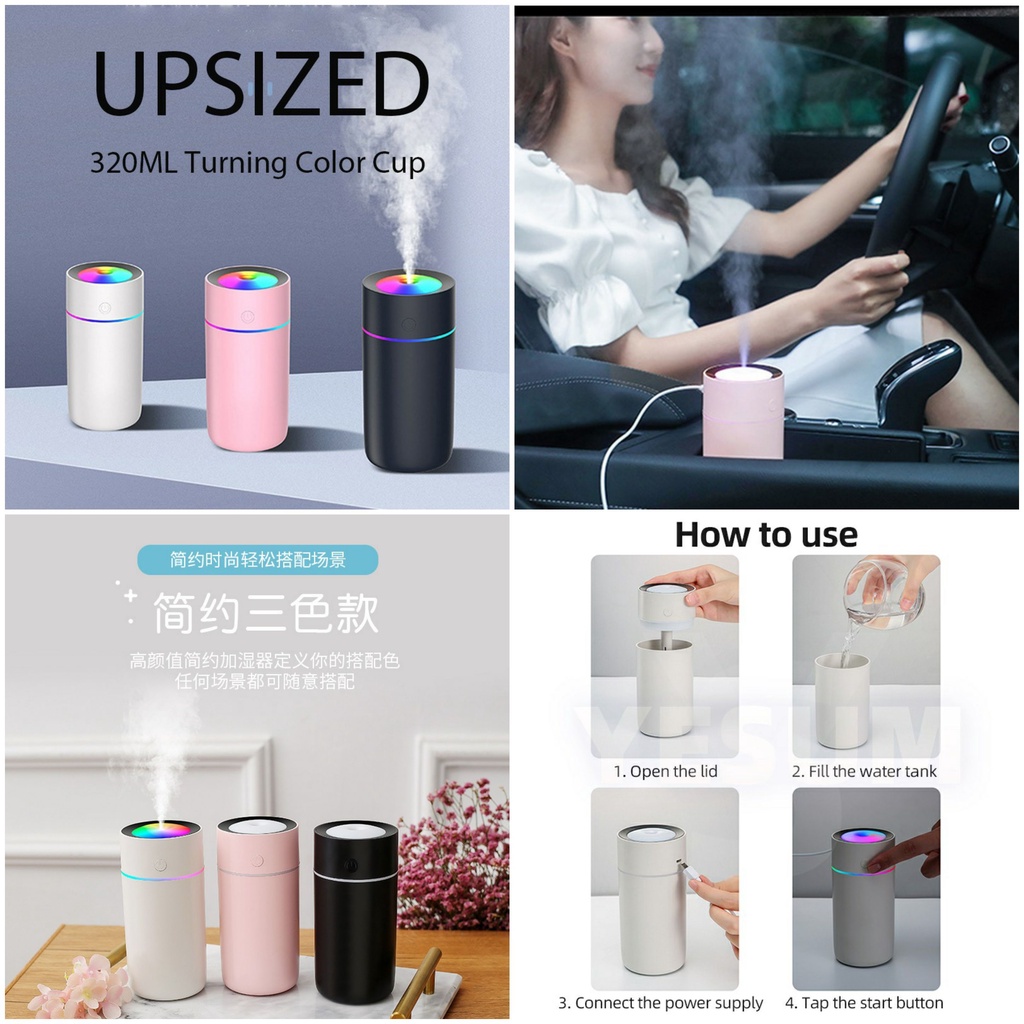 Ultrasonic Turning Color Cup Humidifier USB Diffuser for Aroma in Home Office Car with Rainbow Light LED