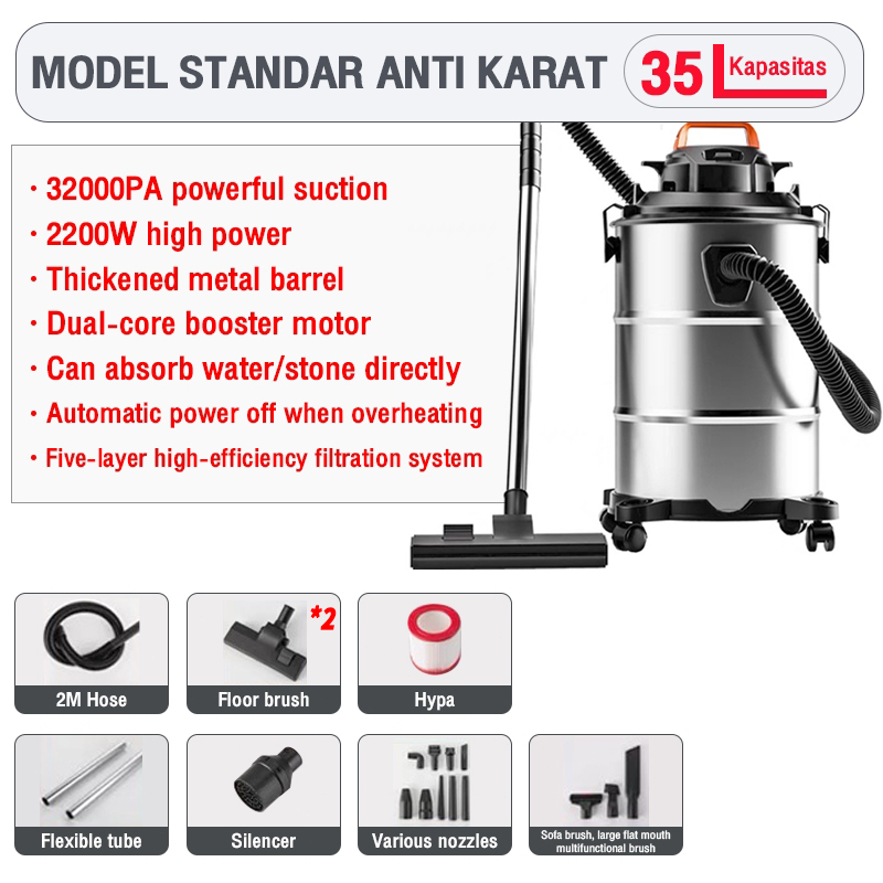 🔥Ready Stock🔥Vacuum Cleaner 35L Bucket 28000Pa Dry and Wet Dust Blower Home /amp Car Dual Use桶式吸塵器