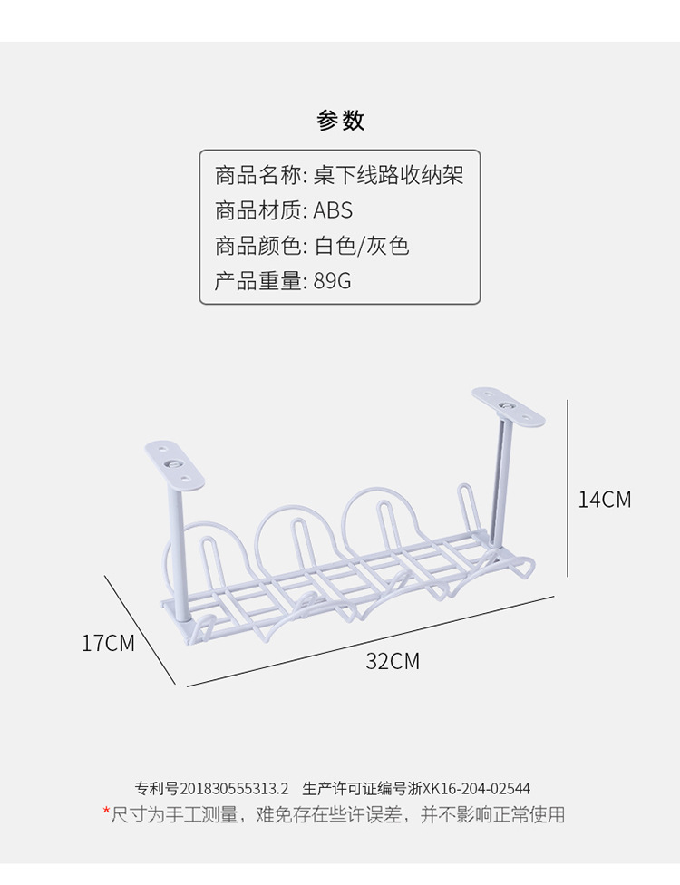 Under Table Power Cord Racks Wire Cable Stroge Hanging Storage Rack