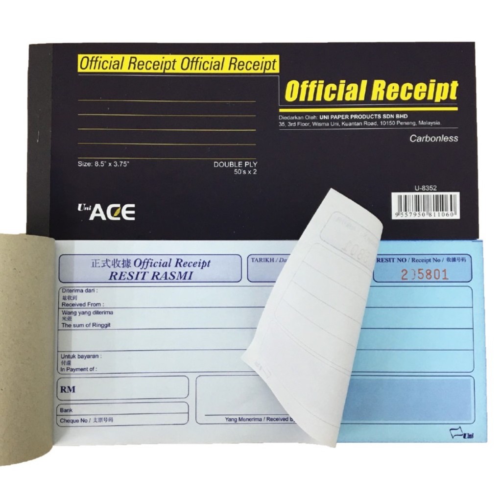 Uni Ace Carbonless Official Receipt Book / Resit 2ply (50set) U-8352