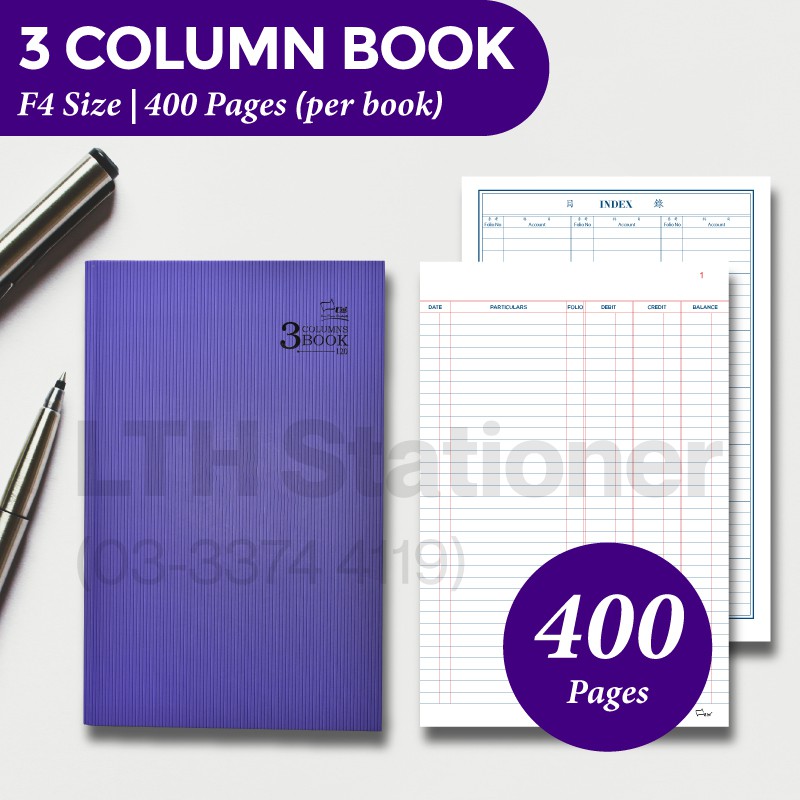 Uni Paper 3 Column Book Foolscap Book F4 Size 120/200/300/400 Page Long Book 3 Column Book 3C Book