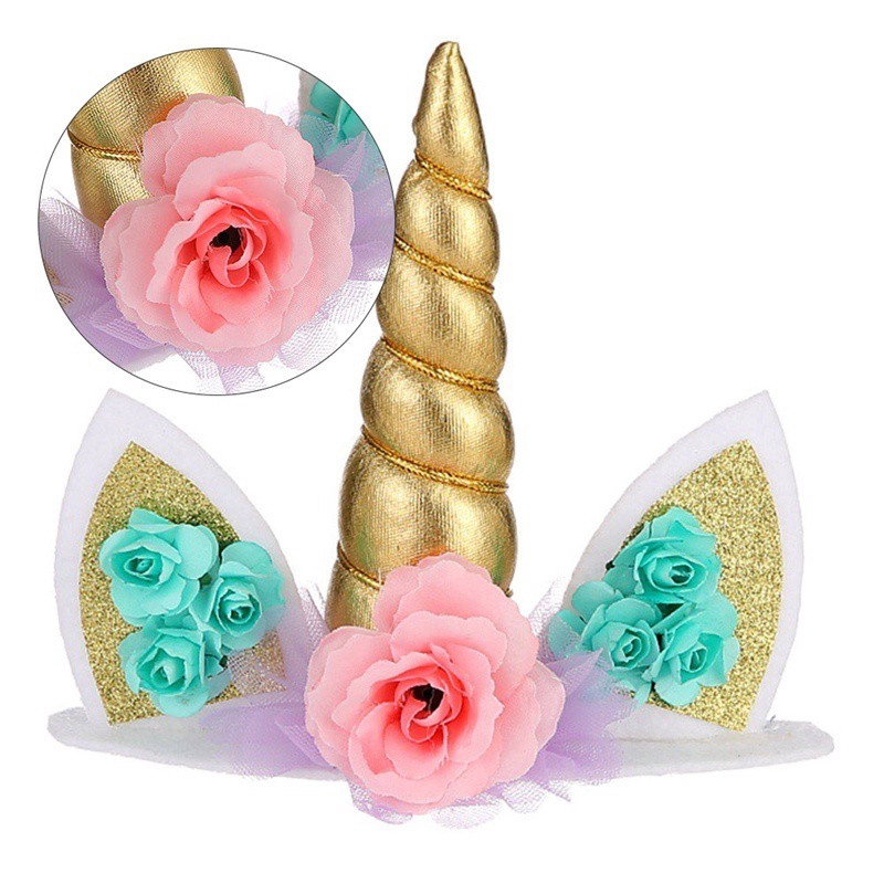 Unicorn Horns Cake Topper Kit Kids Birthday Cake Decorating Boy Girl Baby Shower Unicorn Theme Supplies Party Wedding Decoration