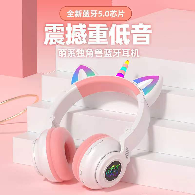 Unicorn cat LED ear wireless Bluetooth headset girl cute headset unicorn bluetooth headset KT-51DZS