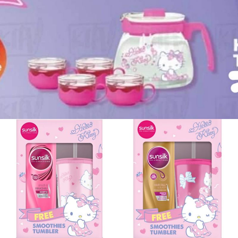 Unilever Sunsilk shampoo with free limited edition hello kitty tumbler (come with hello kitty tea set as free gift)