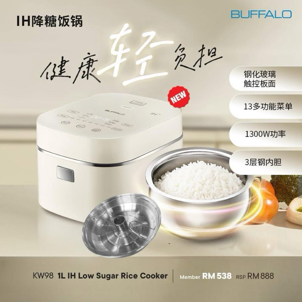 BUFFALO 1L IH LOW SUGAR RICE COOKER 牛头牌1L IH多功能减糖饭锅(KW98
