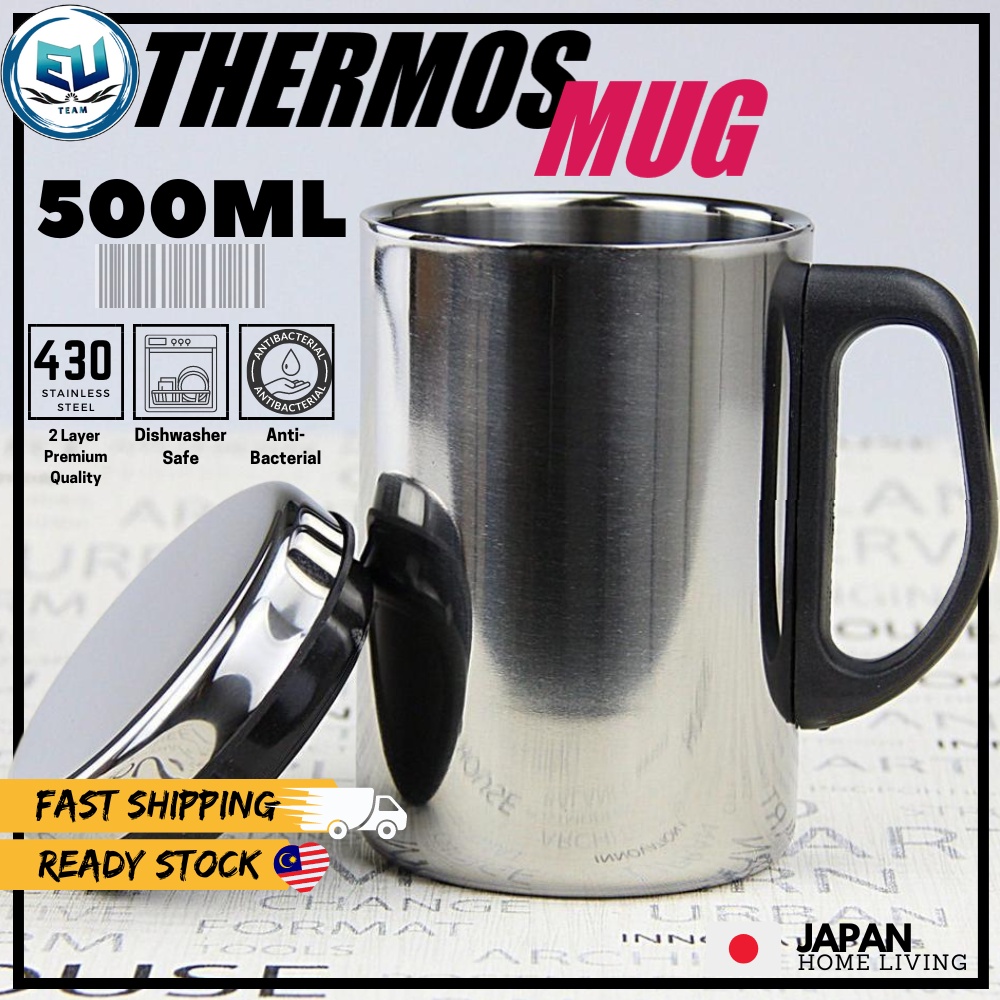 500ml Stainless steel cup double-layer water cup with lid/ tea cup /office thermos cup with lid cawan teh cawan termos