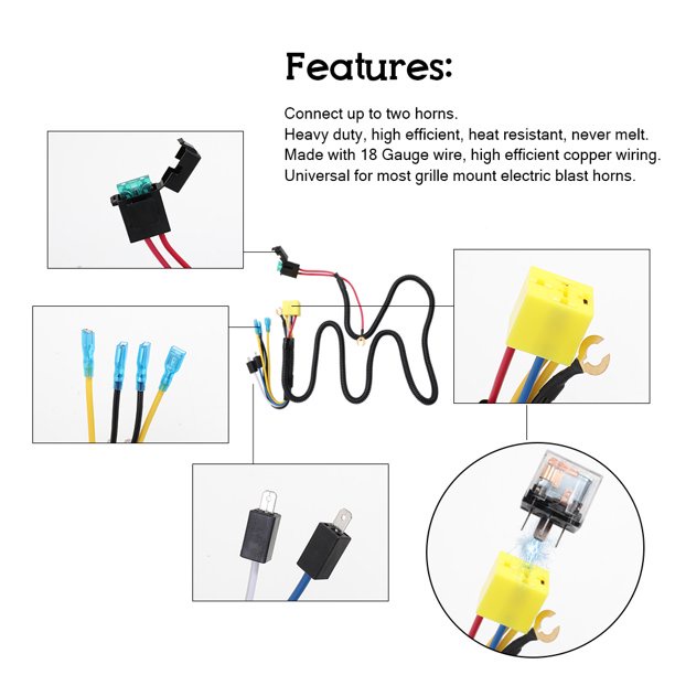 Universal /12V Horn Cable Relay For Grille Mount Blast Tone Horns Motorcycle Horn Wire Wiring Harness Kit For Car Truck