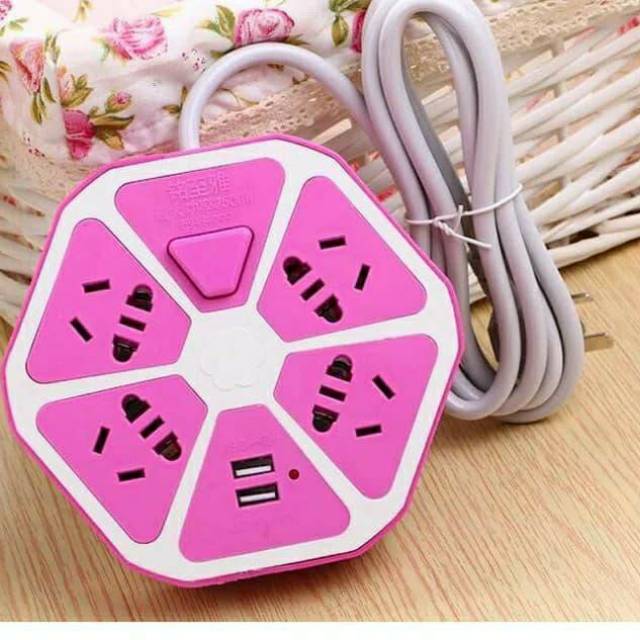 Universal 4 Port Power Socket + 4 Usb Port Orange Socket New Packaging