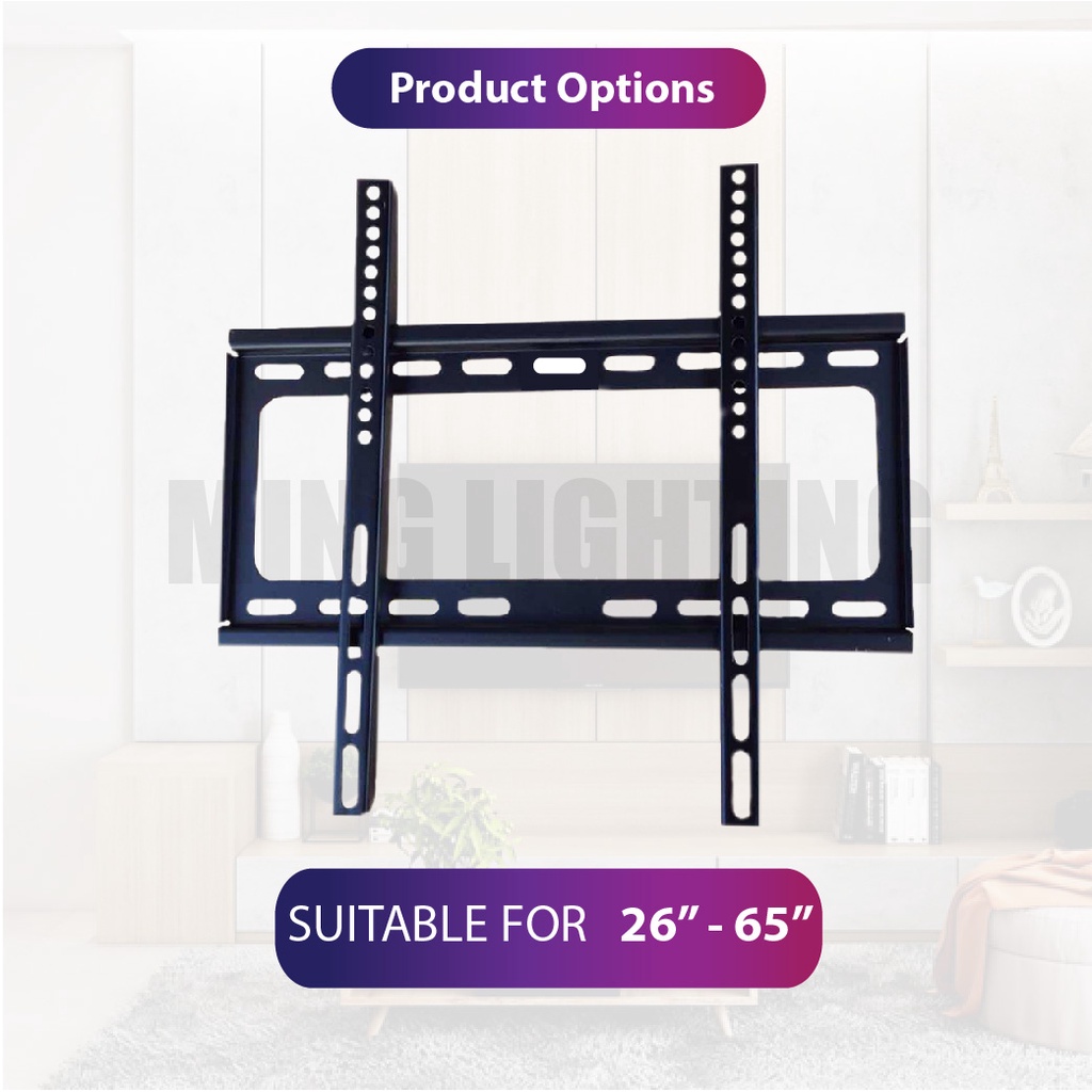 Universal Adjustable Fix TV Bracket Set LED LCD Plasma Wall Mounted Flat Television Holder Rack Breket Televisyen Black