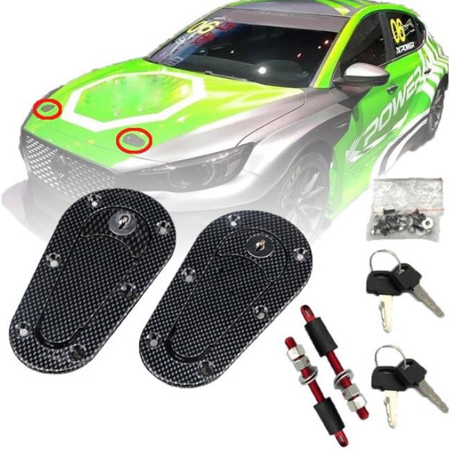 Universal Aluminum Alloy Racing Car Bonnet lock Plus Flush Hood Latch Pin Key Locking Kit hilux wira myvi axia waja saga