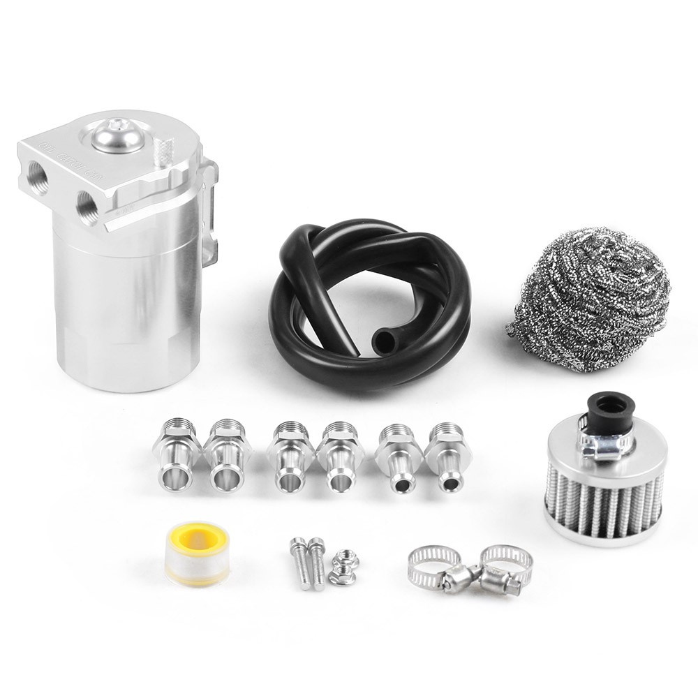 Universal Aluminum Oil Catch Can Tank With Oil Dipstick Polish Baffled Reservoir With Breather Filter Red Blue Black Silver