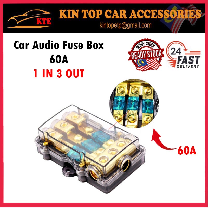 Universal Auto Car Audio Power Fuse Box Fuse Holder 1 In 3 Out 12V 24V 60A