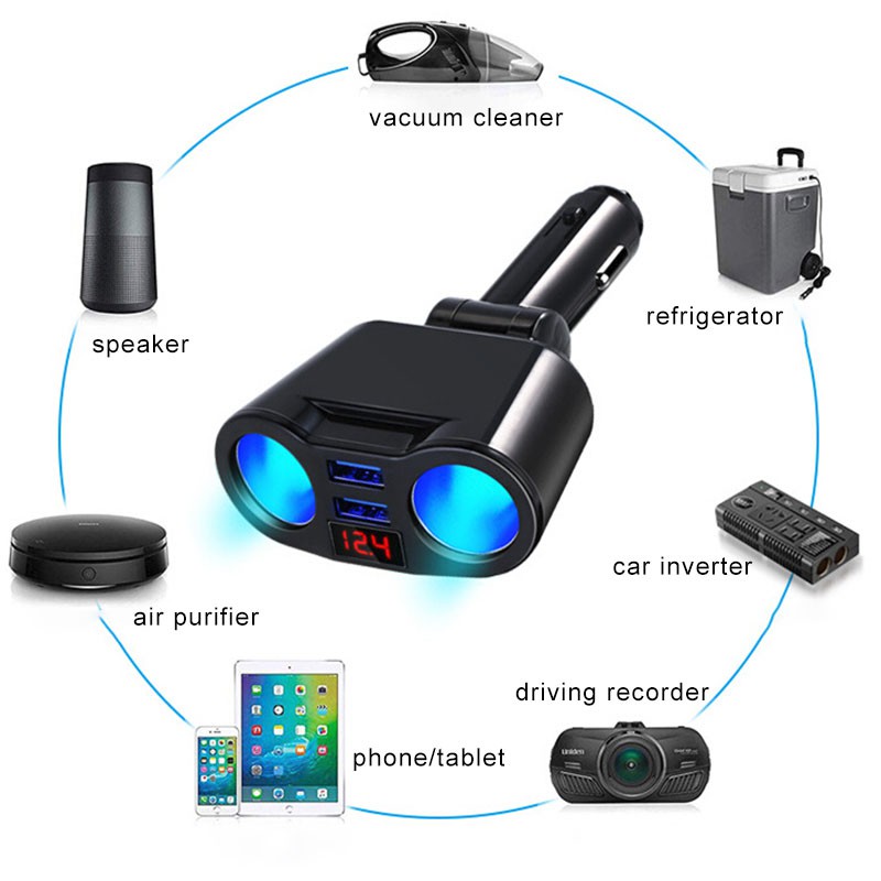 Universal Car Charger Dual USB Interface LED Voltage Display 2 Way Power Socket Splitter LED Display Charging 5V 3.1A High Power Charging