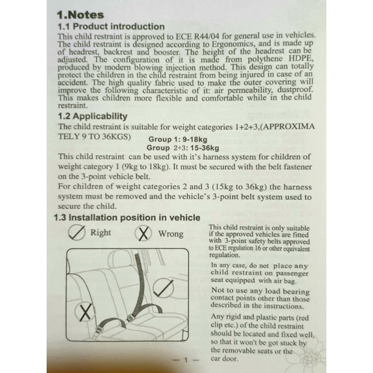 Universal Child Car Seat ( ECE R44/04 APPROVED)