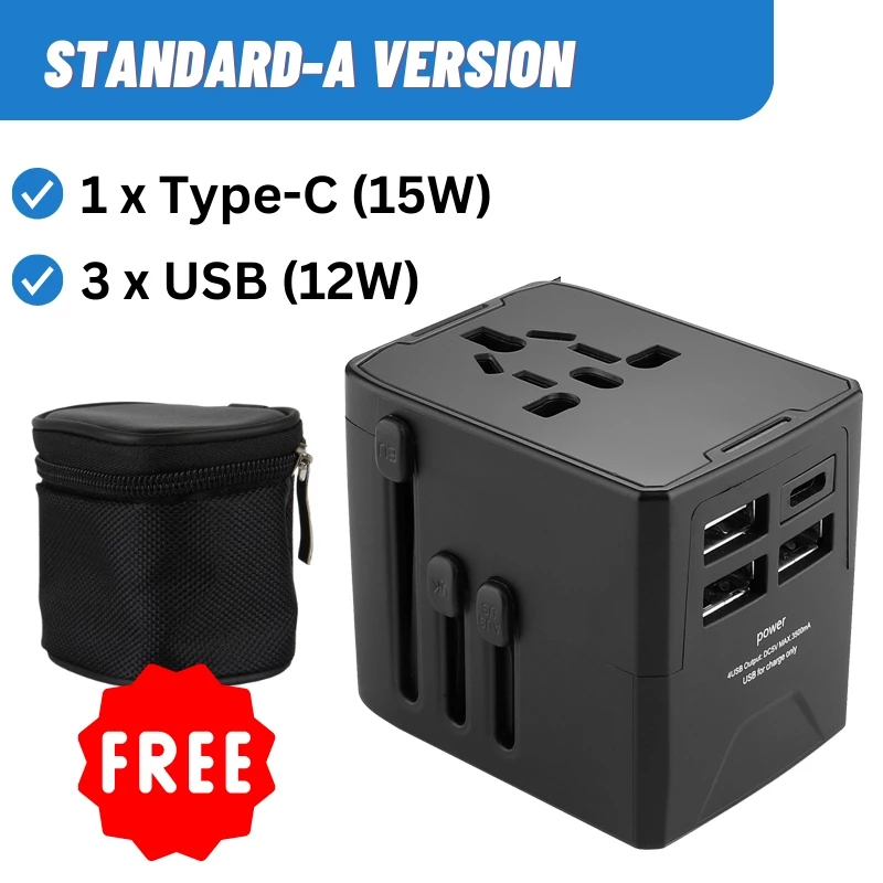 Universal Compact Travel Adapter Wall Plug Worldwide Travel Plug International Adapter Multi Power Extend with 3 USB Ports 1 USB Type-C Port