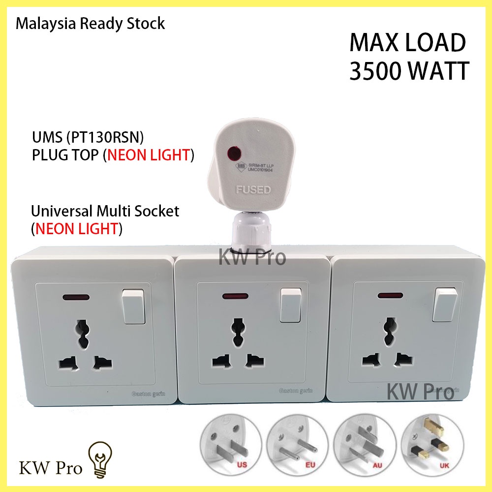 Universal HEAVY DUTY 3 GANG T-Adaptor EXTENSION WALL SOCKET AND ADAPORT 3500 watt 3WAY