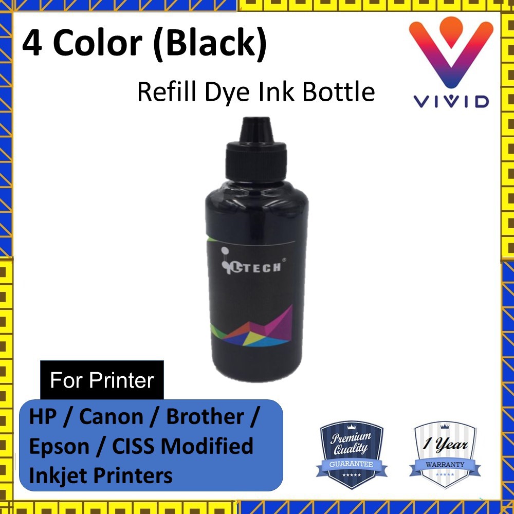 Universal Inkjet Printer Refill Dye Ink Bottle 4 colour - 100ml - BLACK CYAN MAGENTA YELLOW