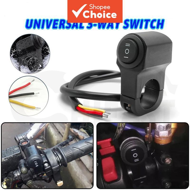 Universal Motorcycle 3 Way Switch ON OFF Mini Driving Light Switch With Clip Waterproof DC12V/10A Black