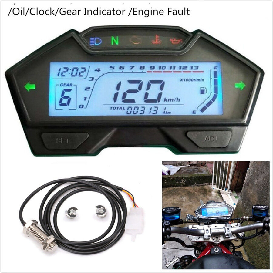Universal Motorcycle Digital Speedometer Odometer Tachometer RPM Gauge 199 Kph Mph for 1 2 4 Cylinder
