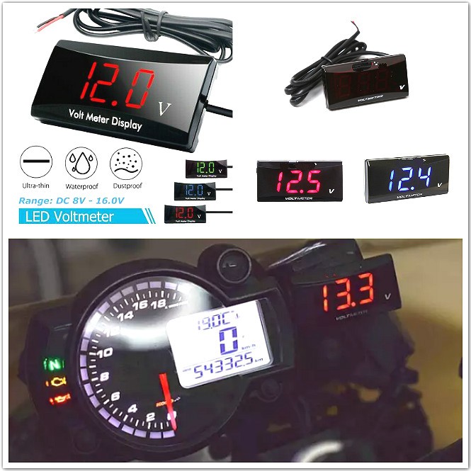 Universal Motorcycle Meter Mini Voltage Meter Voltmeter for DC 12V LED Digital Display .