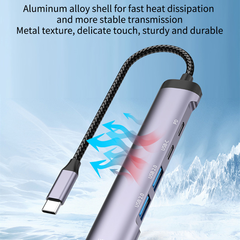 Universal Multi-port Type C HUB 5-In-1 High-speed USB 3.1 Docking Station with 100W PD Fast Charging and TF Micro SD Card Reader USB 3.0 Splitter for Android Phone Tablet Laptop