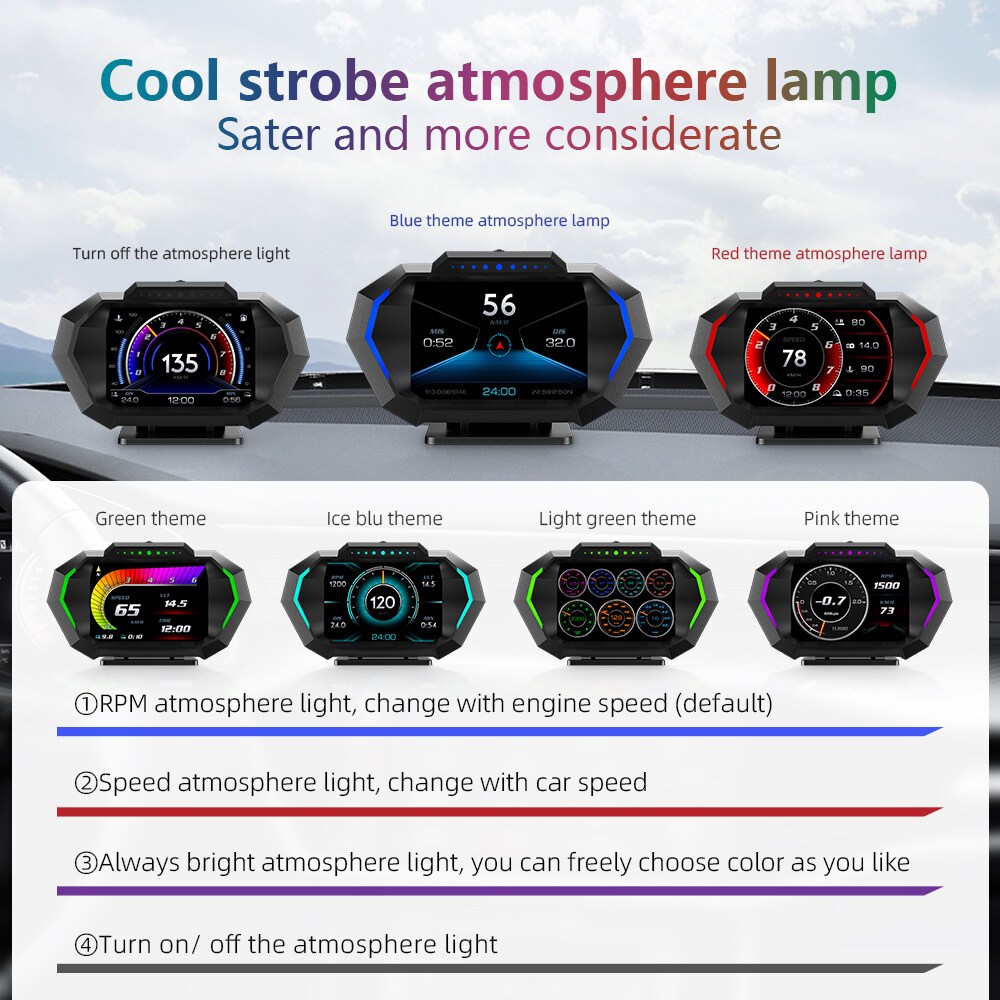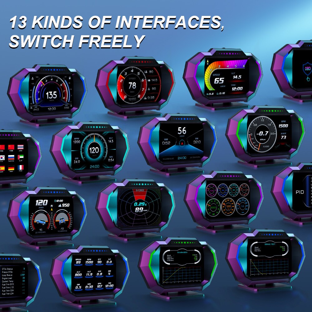 Universal OBD+GPS HUD Smart Gauge P24 Car OBD Head Up Display HUD on Board Computer Digital Speedometer Water Temp Fuel Pressure Consumption Slope Meter