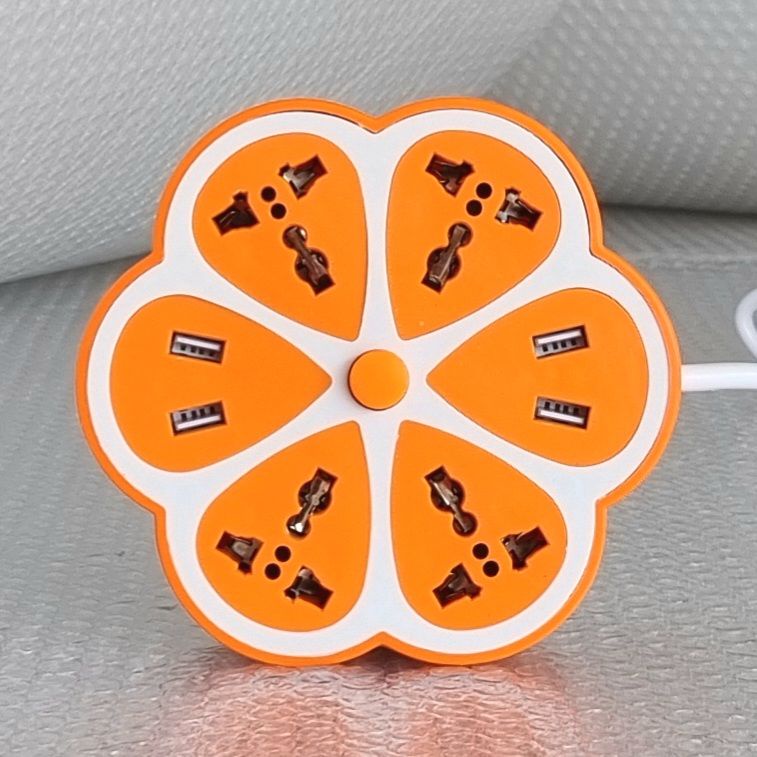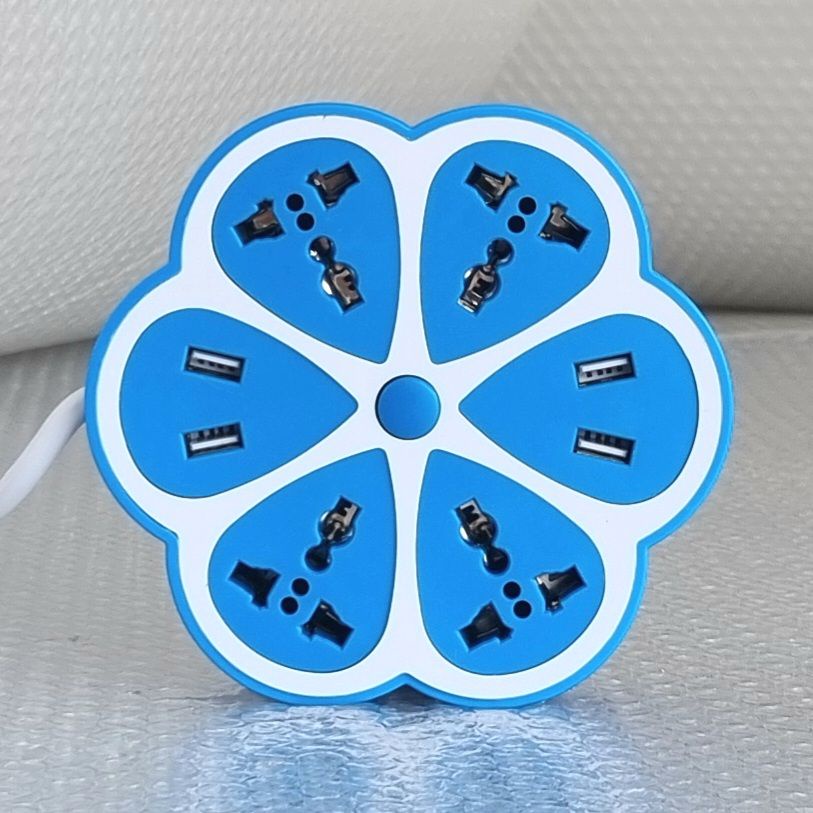 Universal Petal Shape Extension Socket with 3 m Extension Cord, Multi USB Ports (Blue, Green, Orange, Pink)