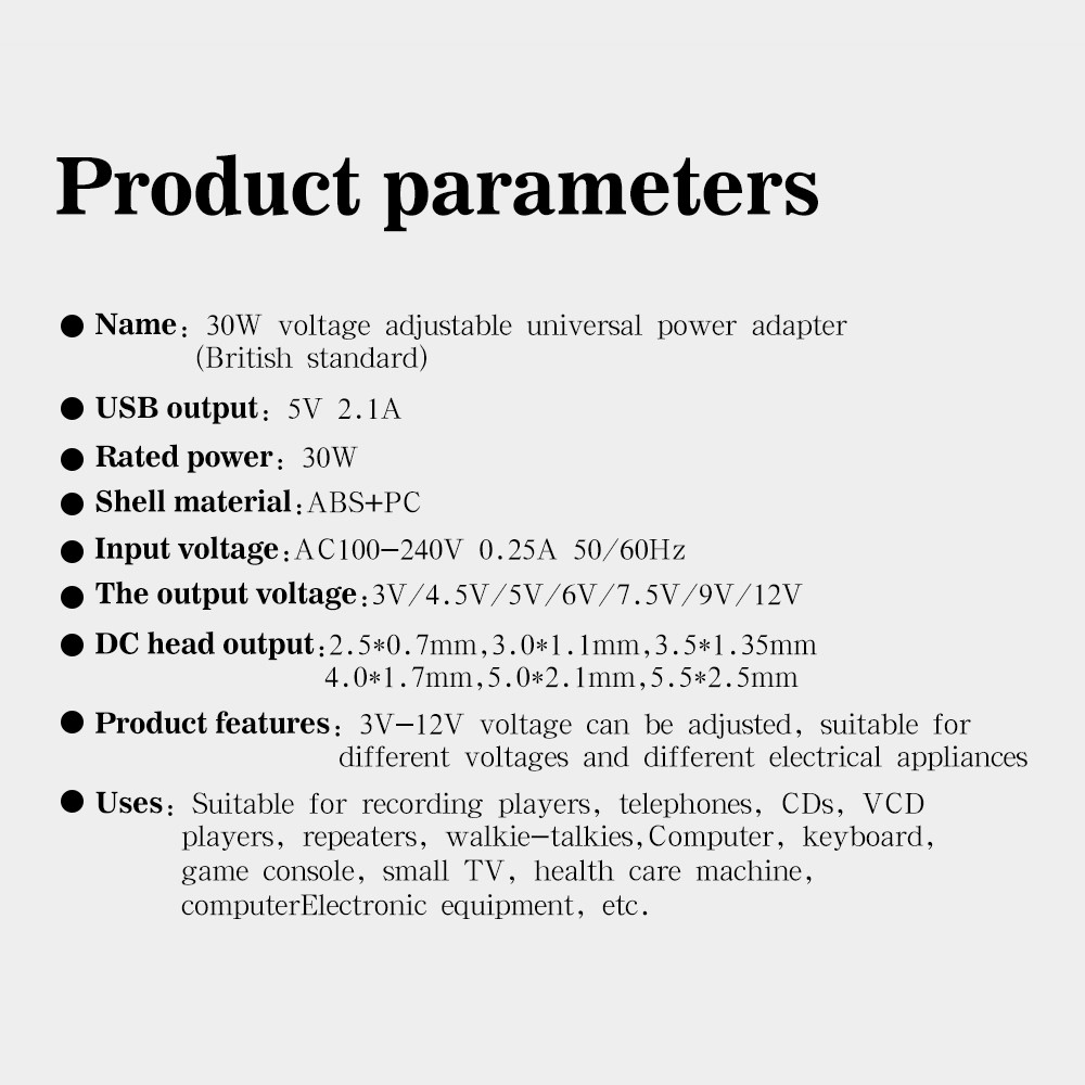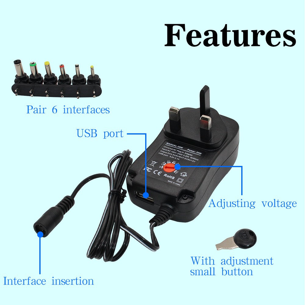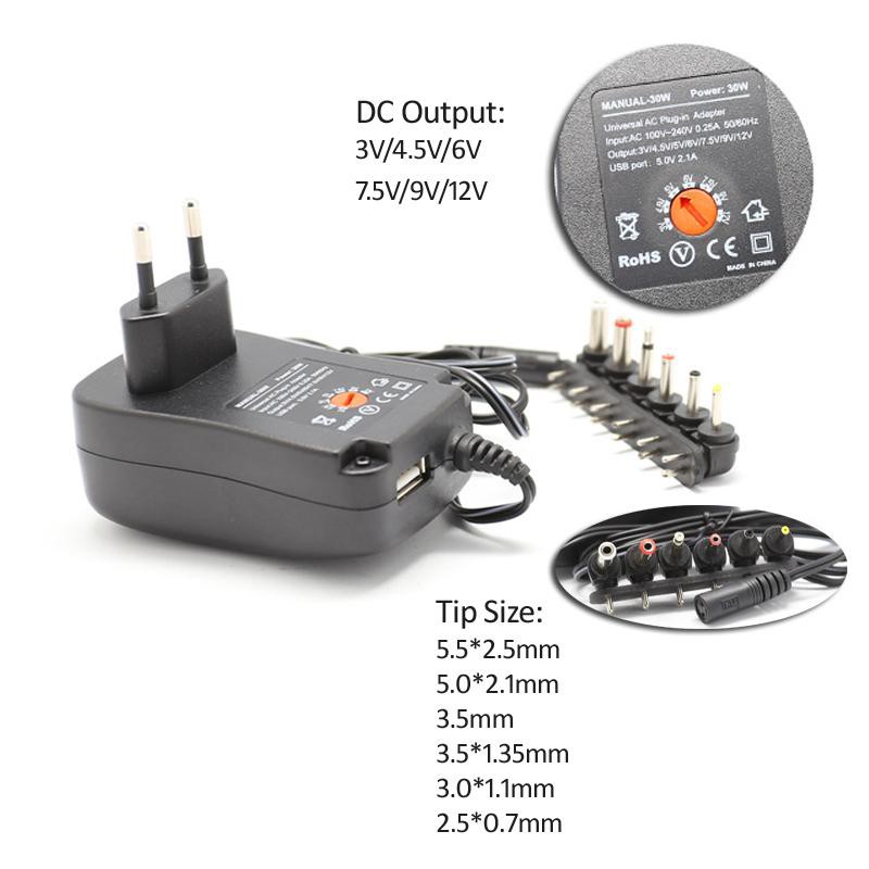 Universal Power Adapter 30W Universal AC/DC Adapter Switching Micro USB Plug