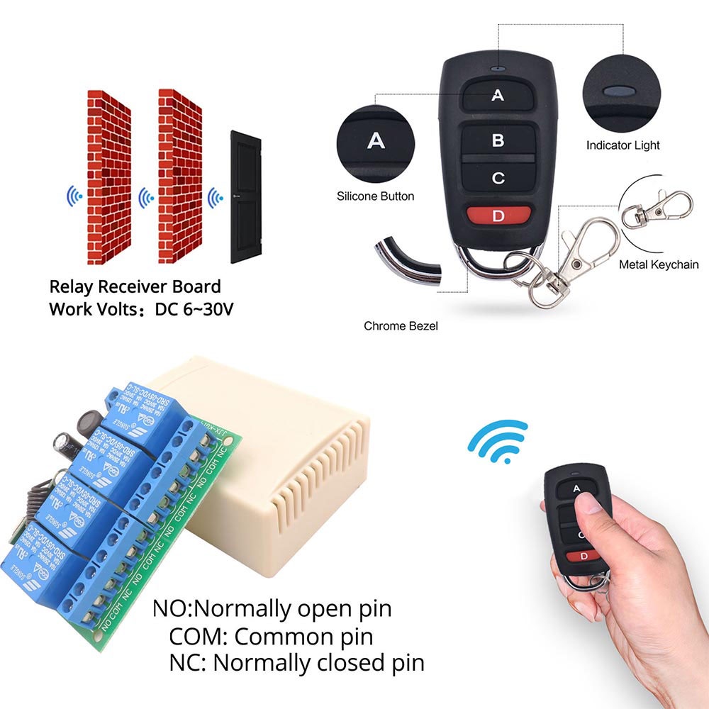 Universal Remote Control 433MHz RF Wireless Switch DC 6V 12V 24V 30V 4Ch Relay Receiver and Transmitter for Lamp Garage Door Motor