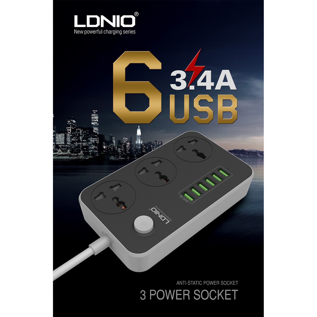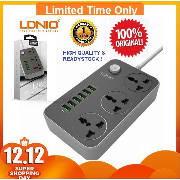 Universal Socket Extension Wire Plug Wayar Soket 6 USB Output 3.4A & 2m UK Plug Power Strip