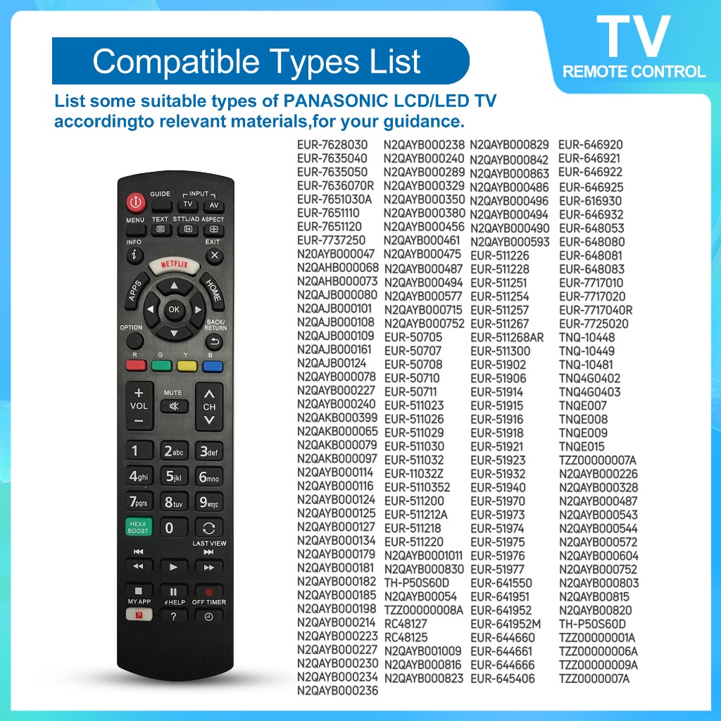Universal TV Remote Control Compatible Replacement for Panasonic TV/ VIERA Link/ HDTV/ 3D/ LCD/ LED