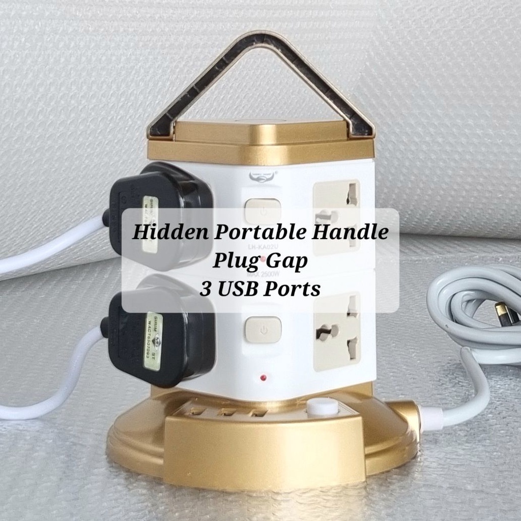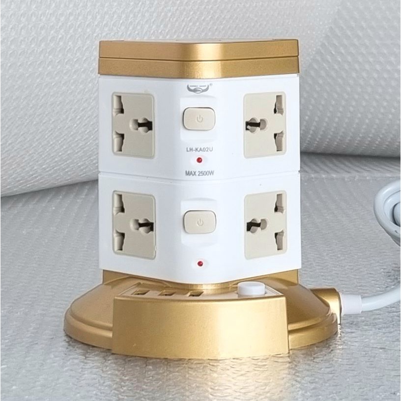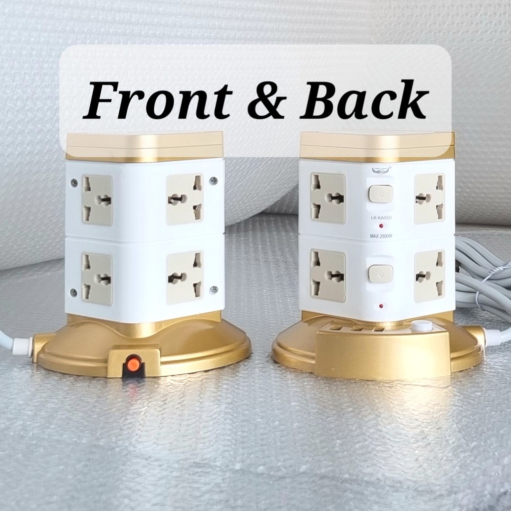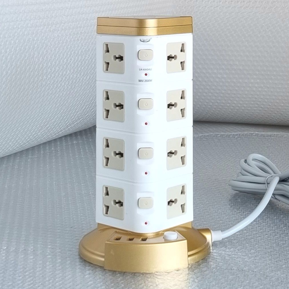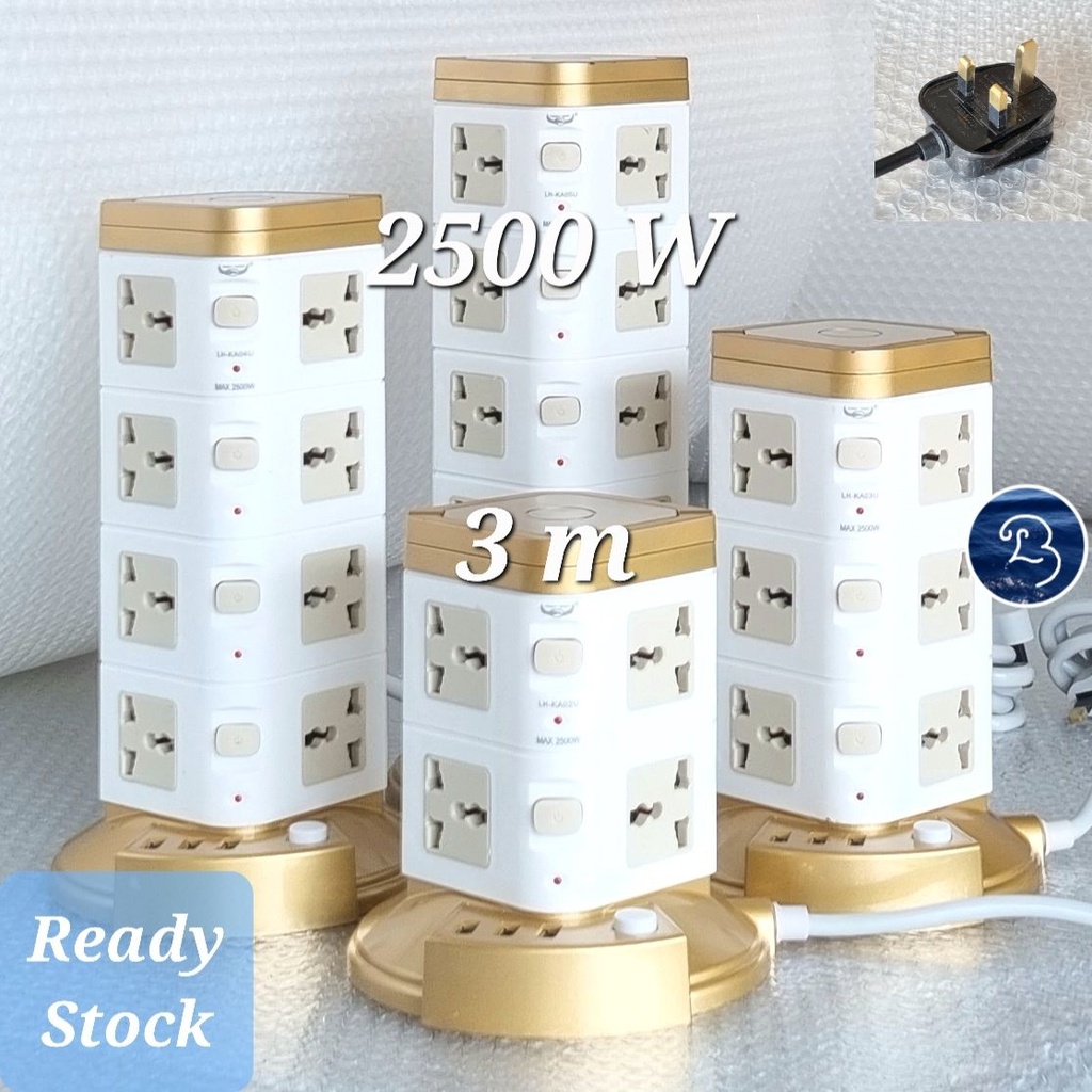 Universal Tower Extension Socket with 3 m Extension Cord, 3 USB Ports, Overload Protection (2, 3, 4, 5 Tiers)