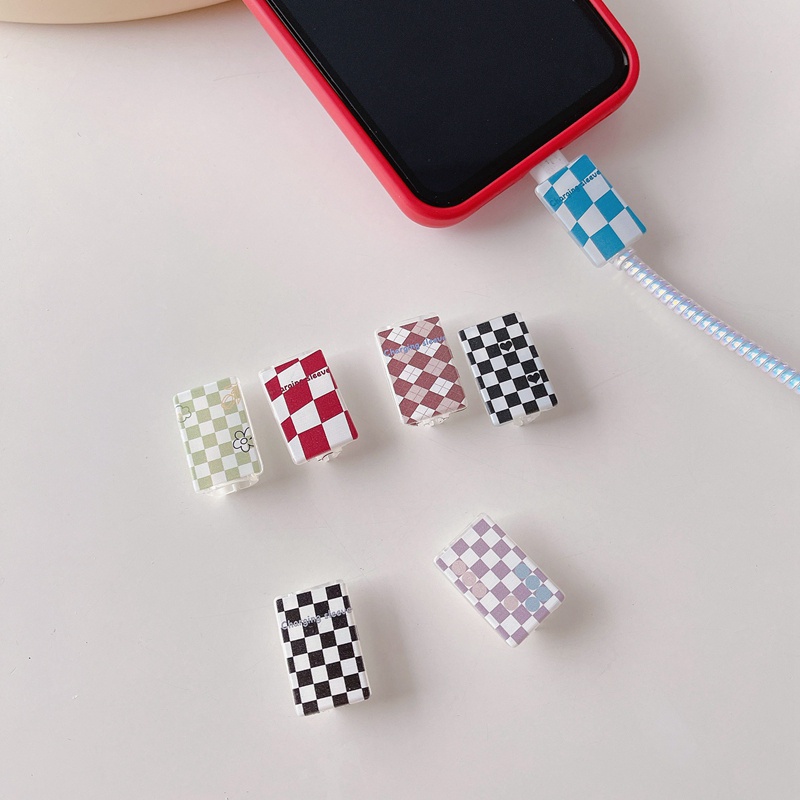 Universal Transparent Checkerboard USB Cable Protector Data Line Cord Type C Protector Protective Case Cable Winder Cover For iPhone Android Charging Cable