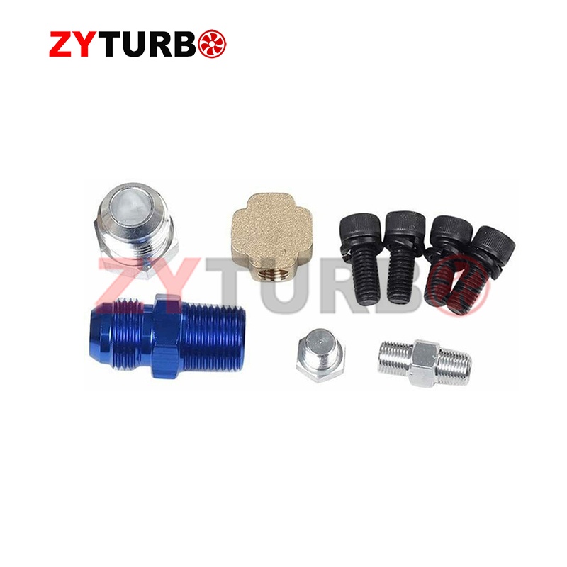Universal Turbo Oil Line Kit Feed + Return Drain Flange T3 T4 T04E Oil Pan Plug
