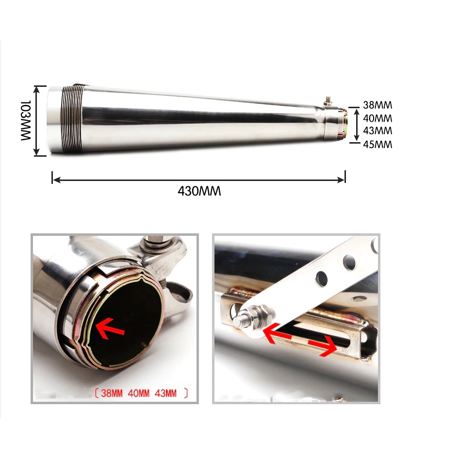 Universal Vintage Motorcycle Retro Tail Exhaust pipe 38mm 40mm 43mm Muffler SilencerFor Cafe Racer Bobber Chop