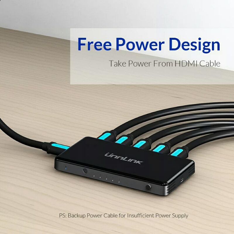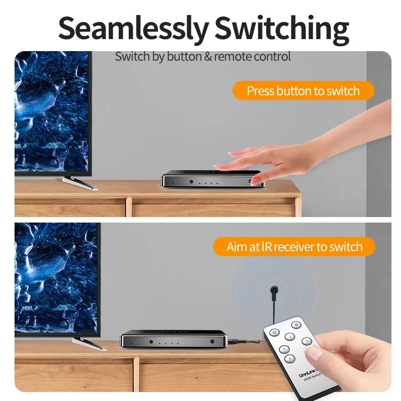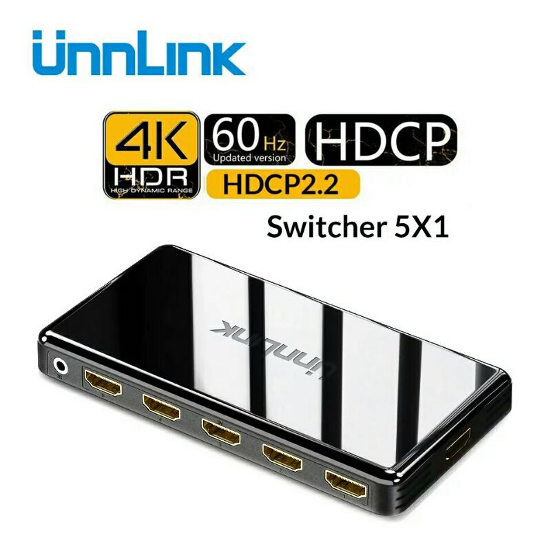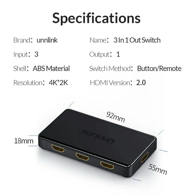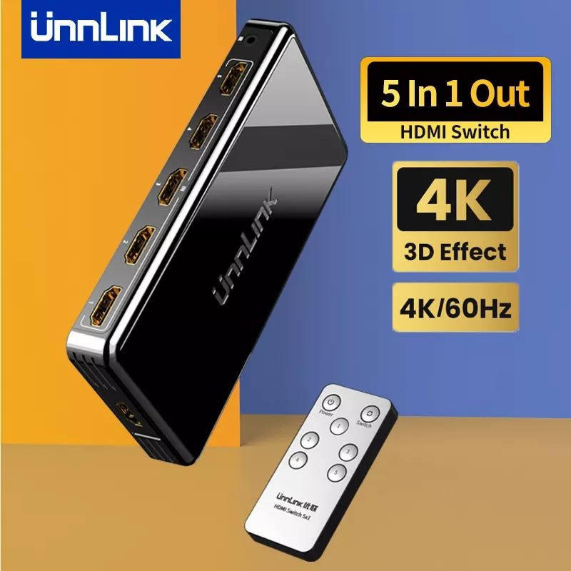 Unnlink HDMI Switcher Version 2.0 Switch UHD 4K 60Hz HDCP 2.2 5 In 1 Out 3 In 1 Out IR Remote For Gaming Tv Blu Ray