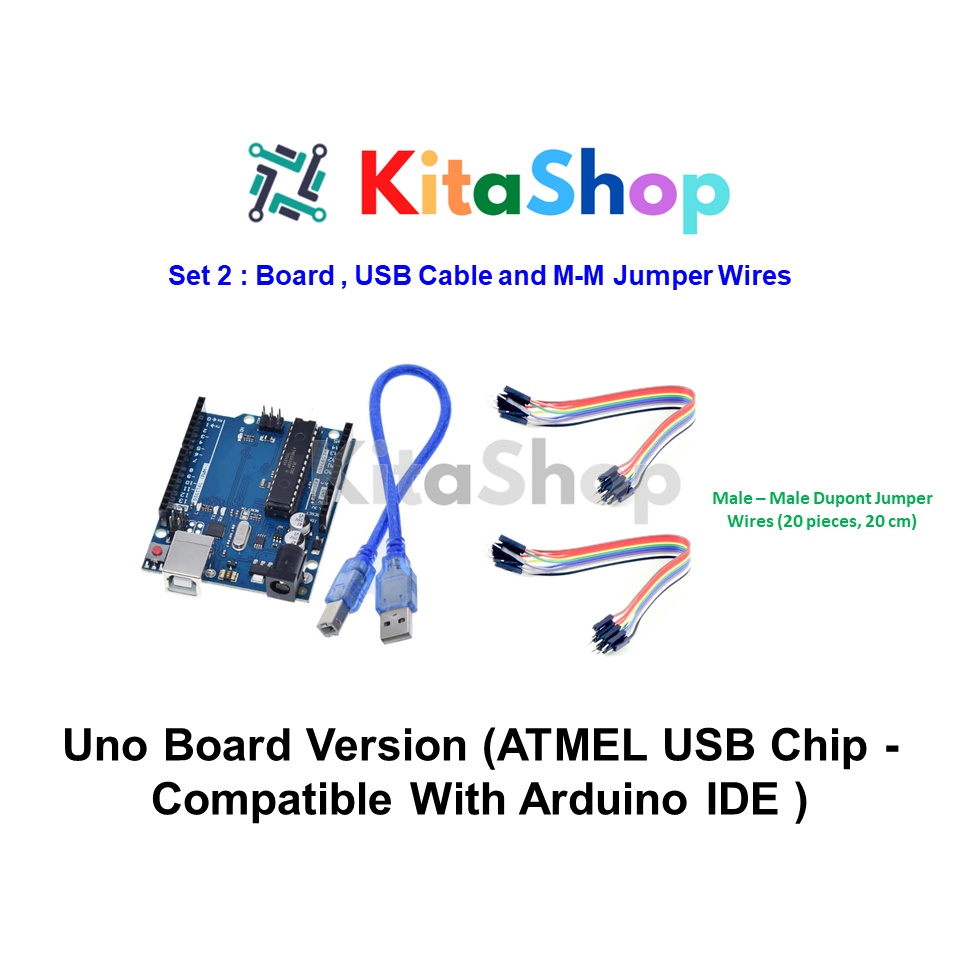 Uno Board Version With USB Cable and Wire Jumpers (ATMEL USB Chip - Compatible With Arduino IDE )