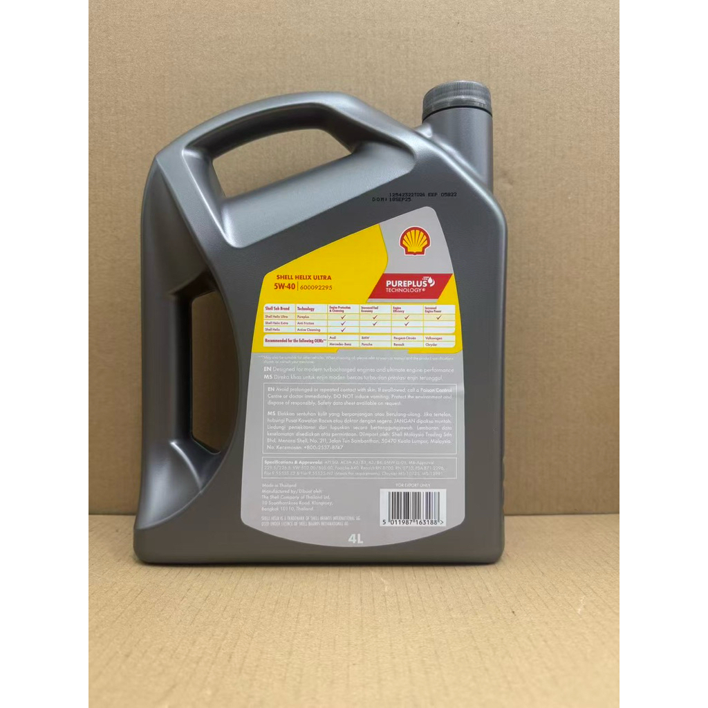 Untuk Pasaran Malaysia) Shell Helix Ultra 5W40 API SP Fully Synthetic Engine Oil (4L) 5W-40
